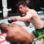 The 24-year-old Argentina native earned a $100,000 “Performance of the Night” award for his first-round technical knockout victory over Josh Emmett in the UFC Vegas 114 headliner on Saturday at the UFC Apex in Las Vegas. Vallejos dropped his opponent with a right hand early, then sealed his victory with a barrage of offense against the fence at the 3:33 mark of Round 1.